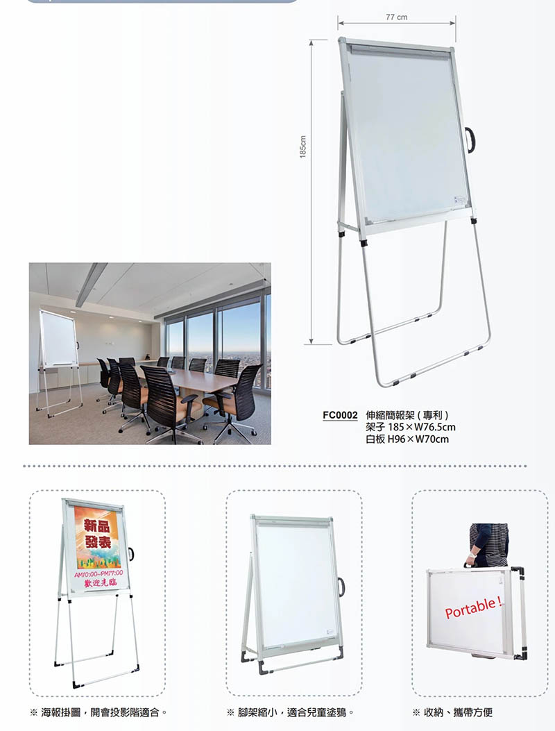 金益山 伸縮 簡報 白板架 寬77X高117-185cm / 個 FC0002