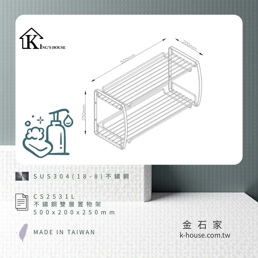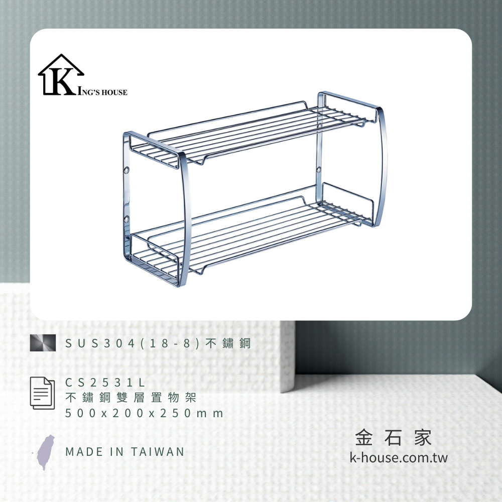 [King's house 金石家] 不鏽鋼雙層置物架(加長型) / CS2531L / SUS304不鏽鋼(18-8) / 不鏽鋼原色