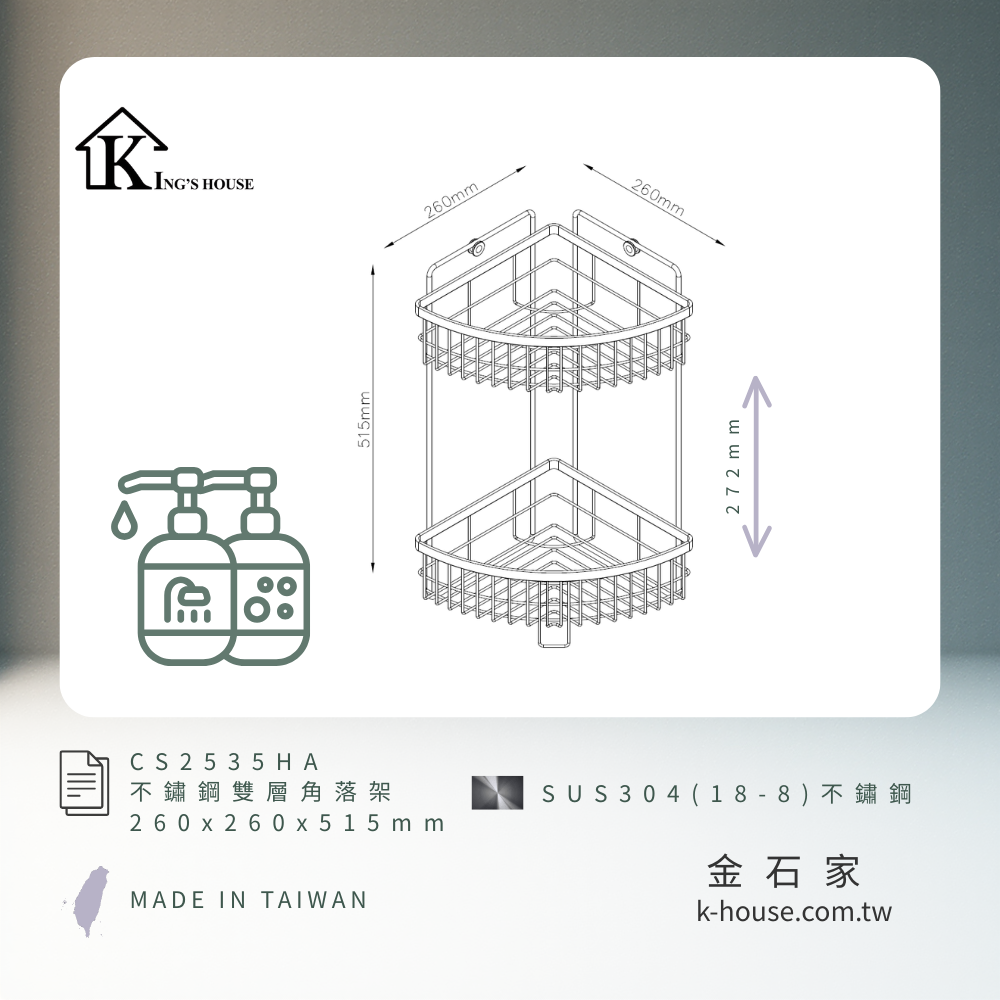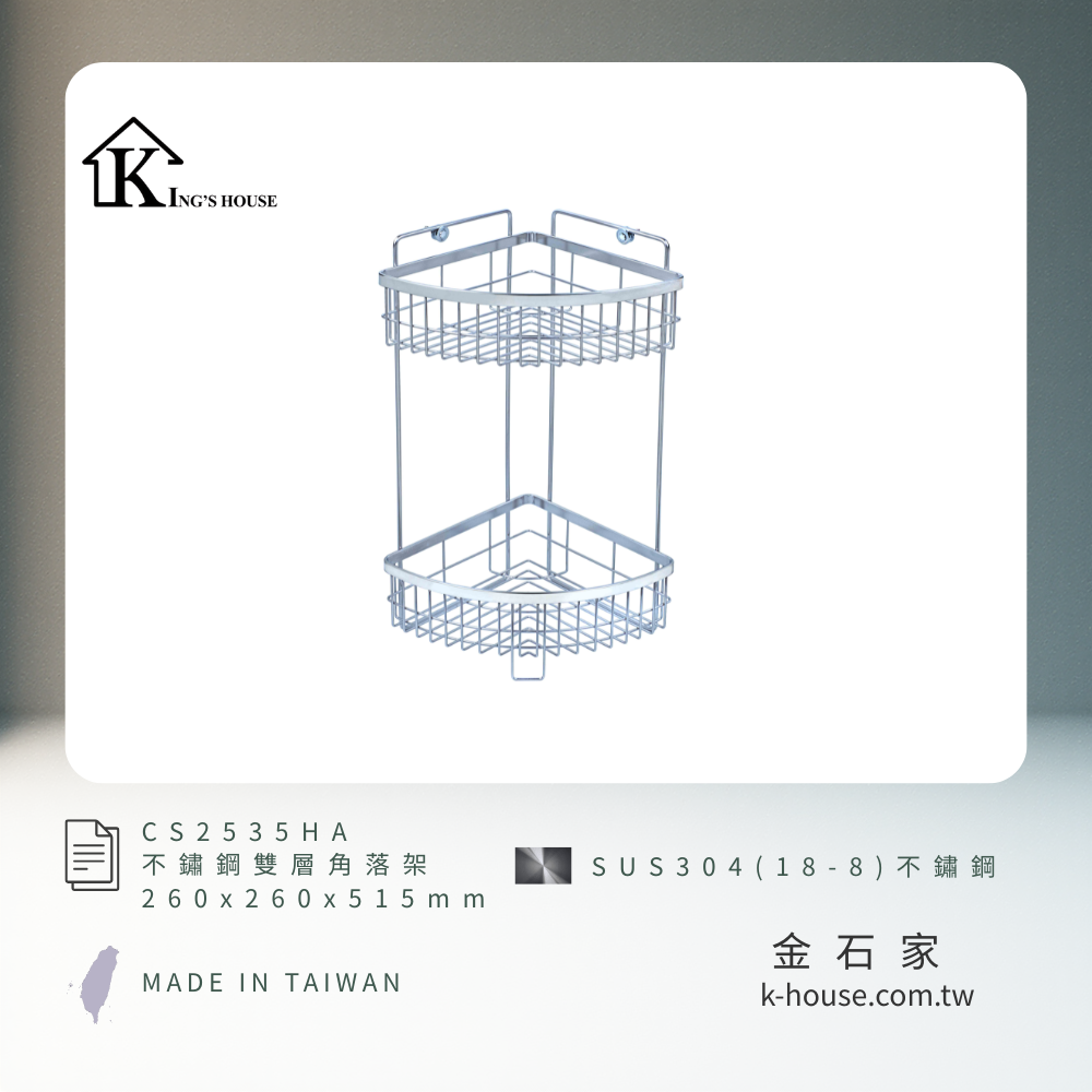 [King's house 金石家] 不鏽鋼雙層角落架(加高款) / CS2535HA / SUS304不鏽鋼(18-8) / 不鏽鋼原色