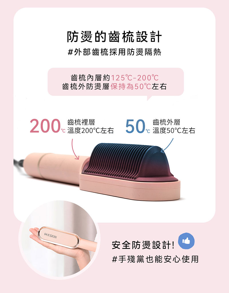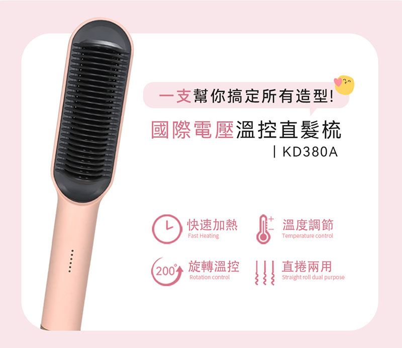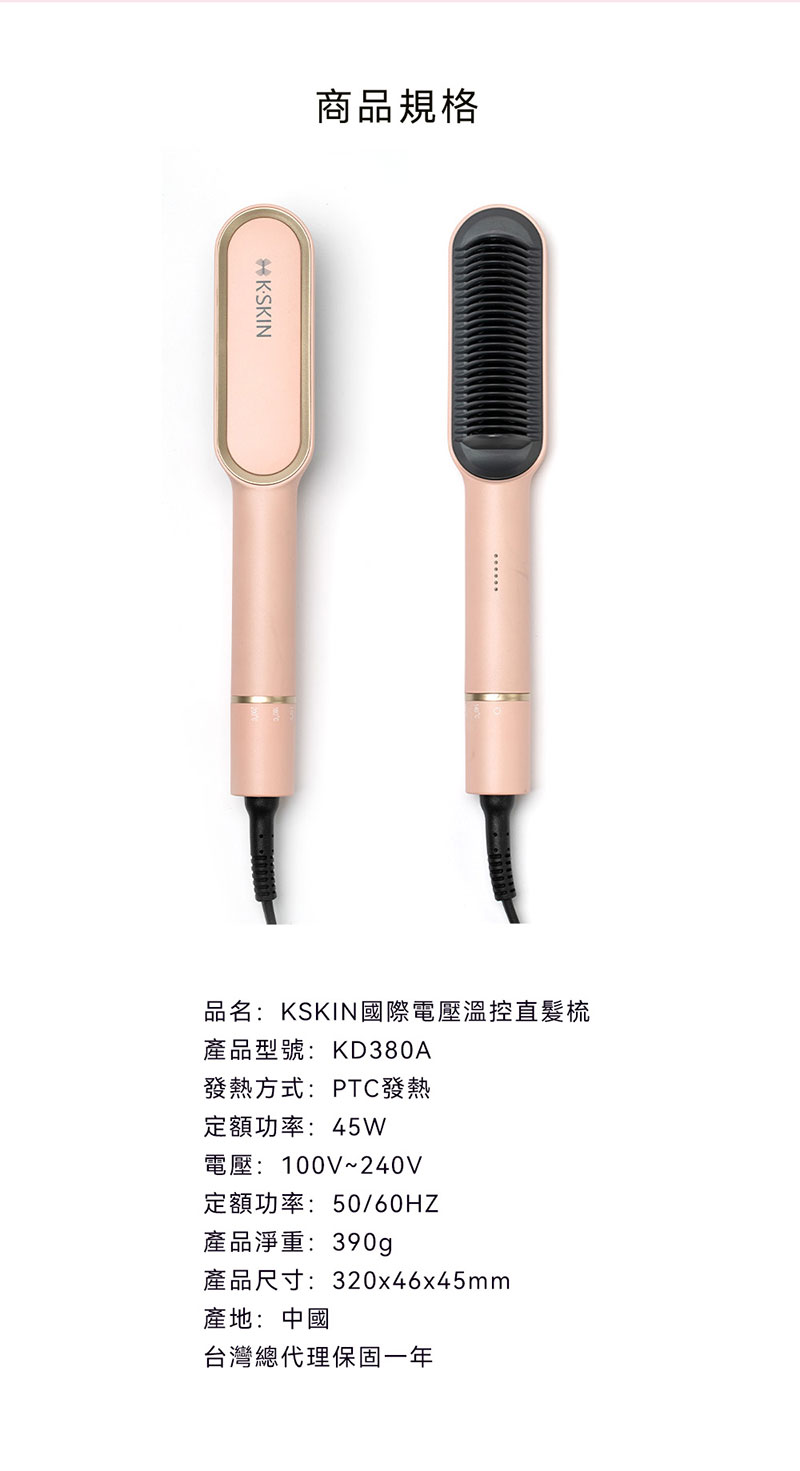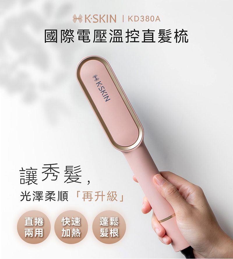 {誠貫}K.SKIN 國際電壓溫控直髮梳(櫻花粉)KD380A