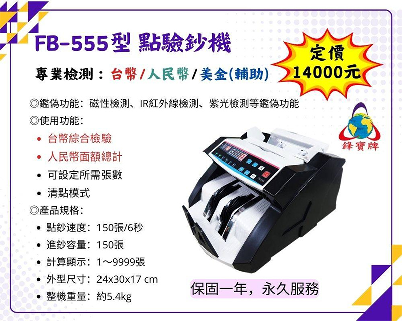 鋒寶牌 商業專用機 點鈔機 驗鈔機 / 台 FB-555 (台幣/人民幣/美金-輔助)