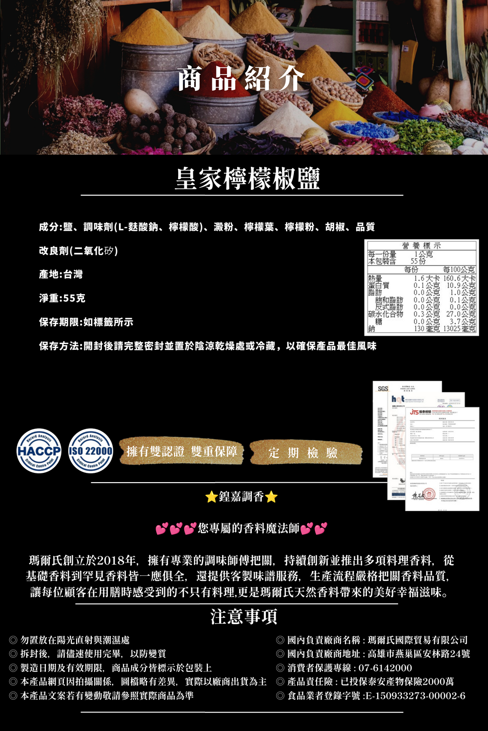 [鍠嘉調香]檸檬椒鹽 55g/罐
