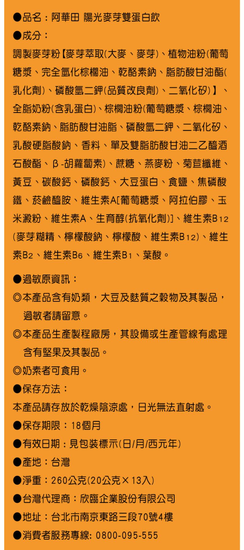 阿華田陽光麥芽雙蛋白飲 260g