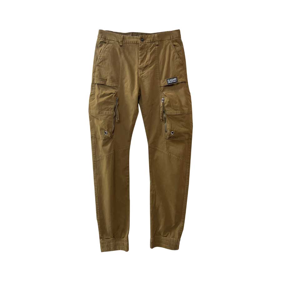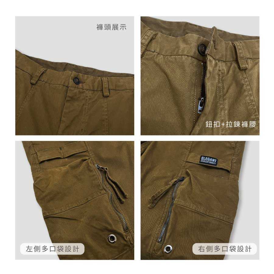 立體貼袋休閒工裝褲-黃棕色M