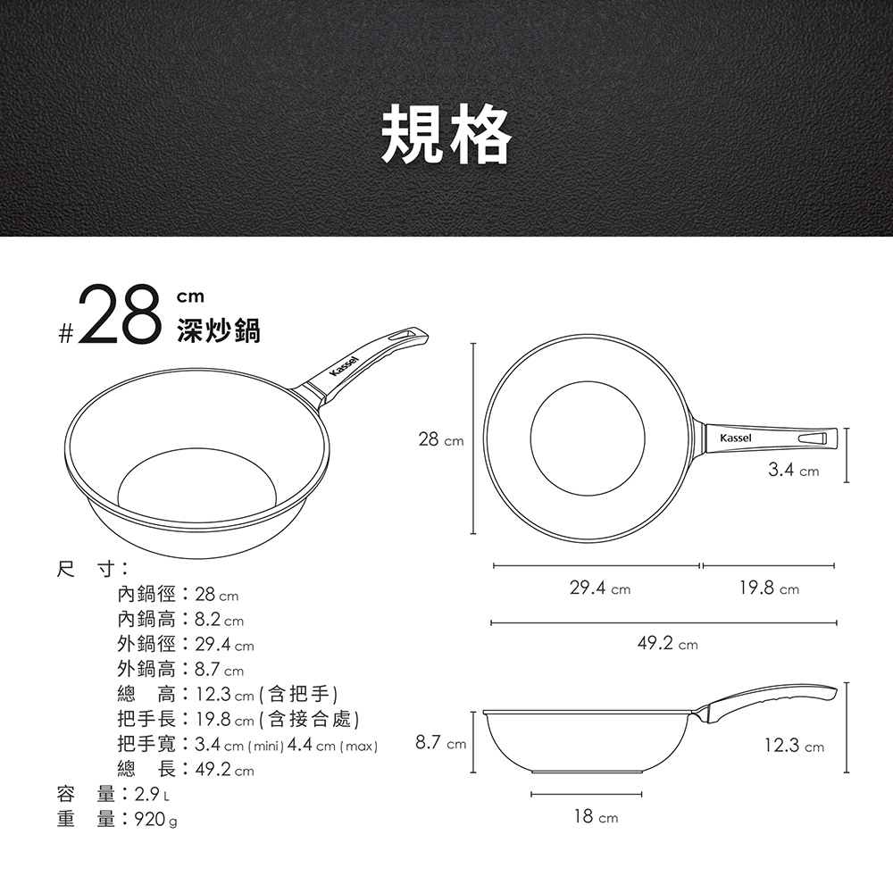 韓國 Kassel 鑽石不沾極輕深炒鍋(好讚鍋) 28cm,適合 3-4 人料理,