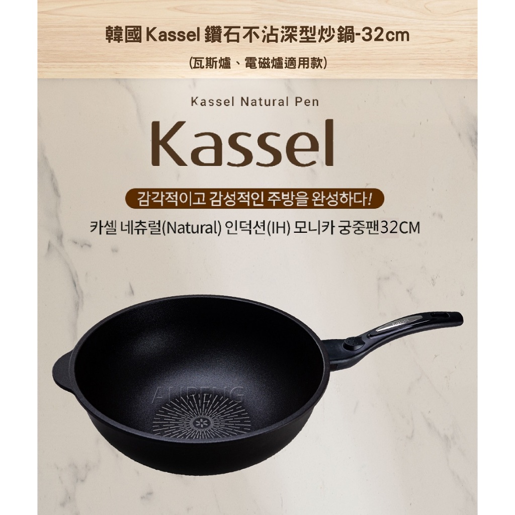韓國Kassel 經典款 鑽石超導熱不沾深炒鍋附鍋蓋-32cm(好讚鍋、瓦斯爐、電磁爐適用款、不挑爐具)