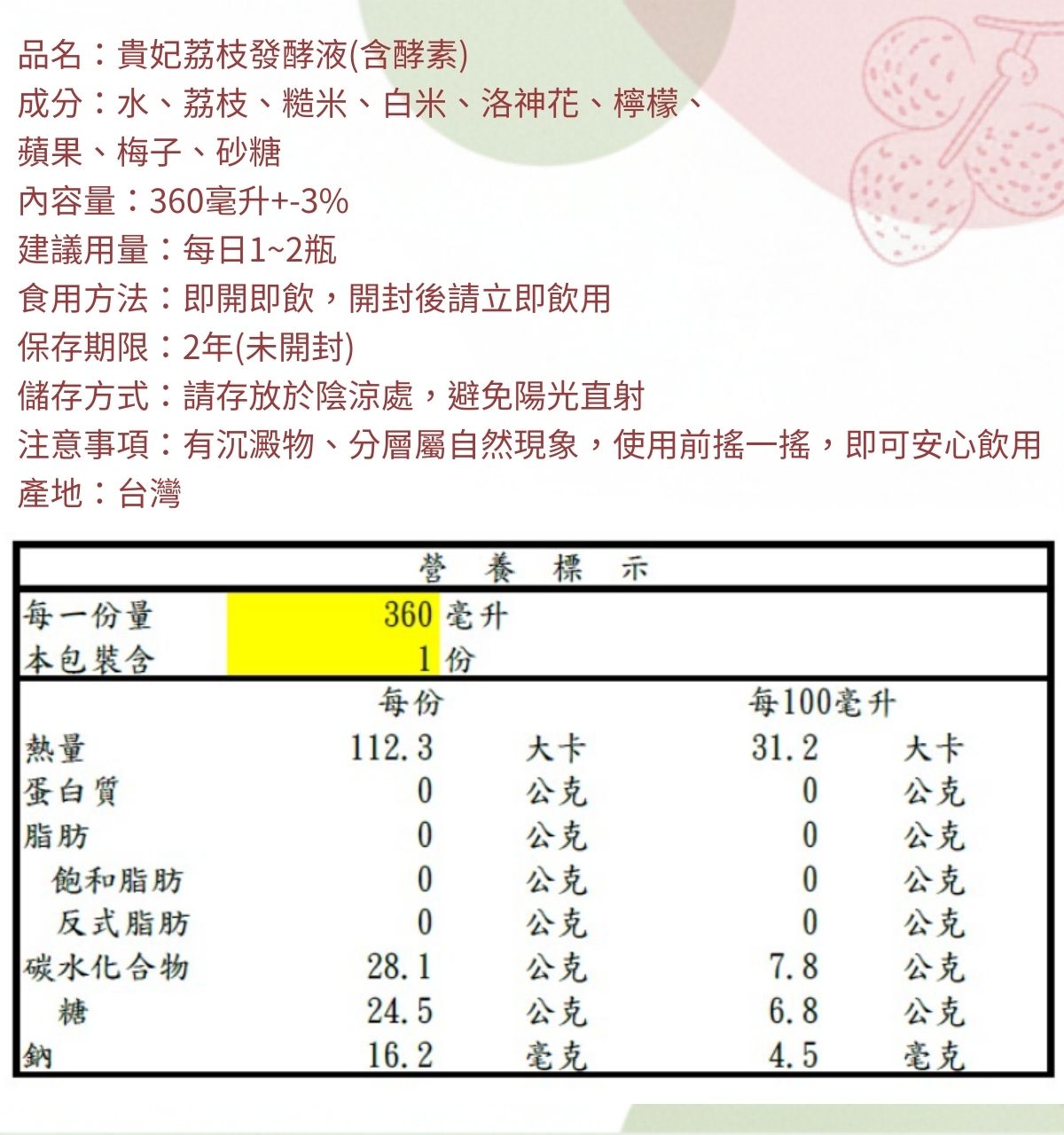 【台中大里農會】貴妃酵飲 荔枝發酵液(含酵素)360mlX6罐 黑葉荔枝發酵液 酵素飲