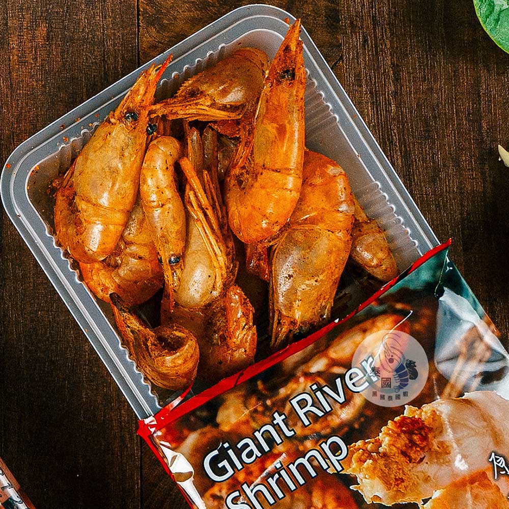 成份:泰國蝦、棕櫚油、糖、辣粉(乾辣椒、油菜籽油、白芝麻、大豆、花生、5-次黃嘌呤核苷磷酸二鈉、5-鳥嘌呤核苷磷酸二鈉、食用鹽、花椒、白砂糖、雞精調味料、{ (味精、食用鹽、麥芽糊精、白砂糖、水解植物蛋白粉(大豆)、酵母抽提物、雞肉抽提物、雞蛋、雞油、香辛料(八角、桂皮、肉豆蔻、砂仁、花椒、馬芹)、複方添加物調味劑(5'-次黃嘌呤核苷磷酸二鈉、5'-鳥嘌呤核苷磷酸二鈉)、著色劑(β-胡蘿蔔素)、香料)]、香辛料(小茴香、香草、桂皮、八角、山奈根莖、小豆蔻、月桂葉·丁香)、甘草素(甜味劑))、香蒜胡椒調味粉(食鹽、L-麩酸鈉、5'-次黃嘌呤核苷磷酸二鈉、5'-鳥嘌呤核苷磷酸二鈉、琥珀酸二鈉、紐甜(甜味劑)、胡椒、蒜粉、薑粉、香茅粉、辣椒粉)