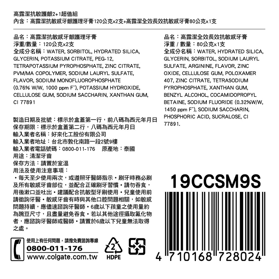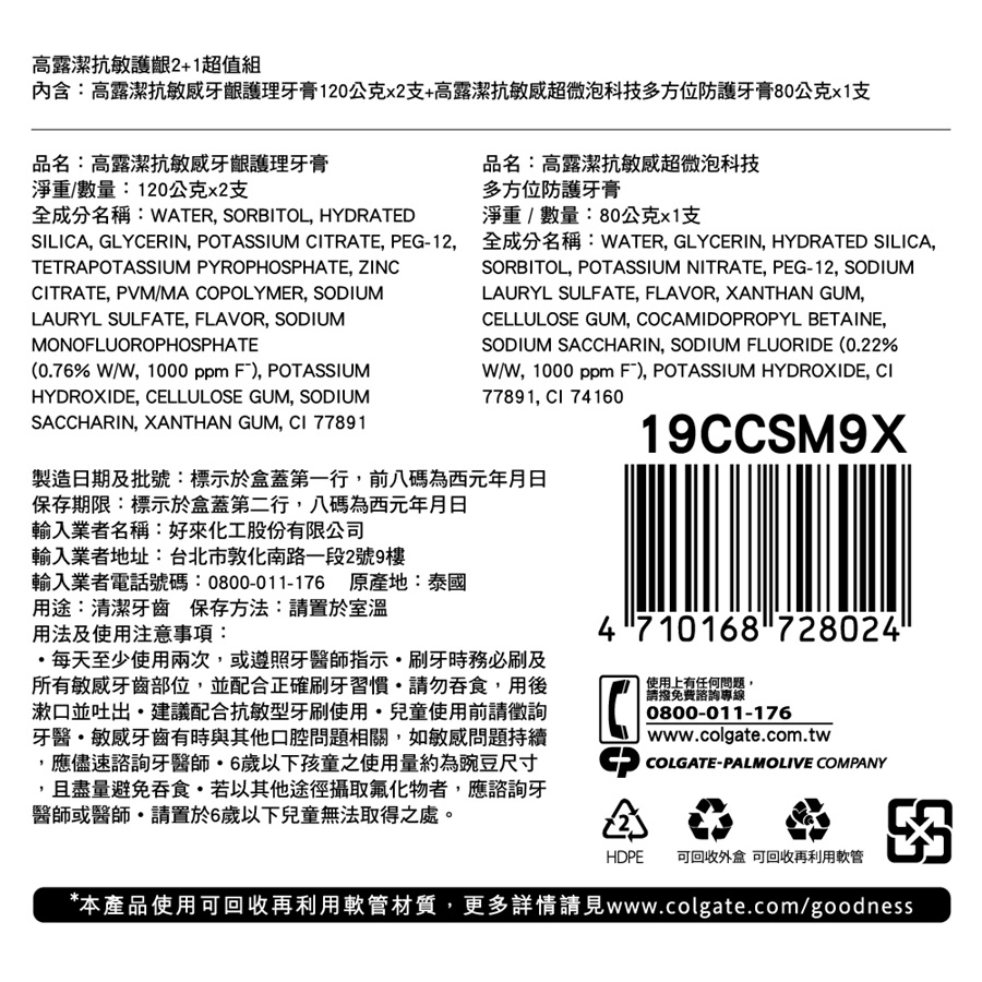 高露潔抗敏感牙齦護理2+1超值組
