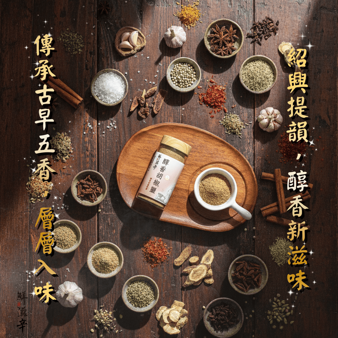 獨家特調經典重現醇香胡椒鹽上市!一口一口停不下吃過都說讚!市面上絕無同款的好味道!南投埔里名產玉泉紹興酒製作而成的獨家酒香鹽。祕製調配純正五香白胡椒,入口香醇無酒味。香辣吮指復刻出古早經典美味又更勝一籌!適用於各種料理添加享用,讓料理提升新境界!感受美食新饗宴!