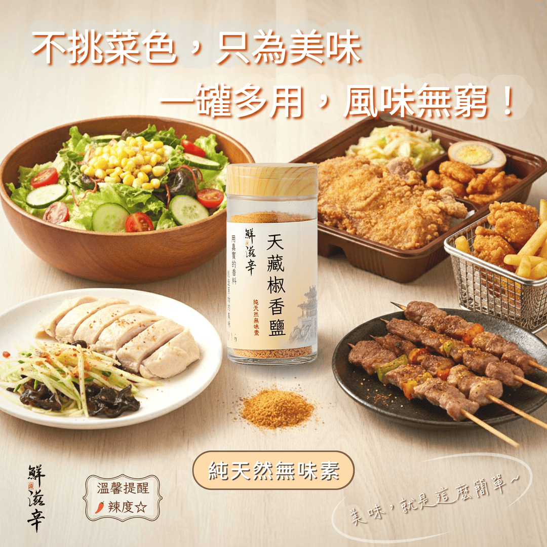 全新獨特口味天藏椒香鹽酸甜香辣超涮嘴!特選屏東九如高品質金桔與匈牙利紅椒粉和多種特調辛香料結合,創造出香而不辣、麻而不澀,滋味豐富難以言喻的美味調料。可搭配燒烤、炸物、輕食減脂水煮健康餐,酸香好滋味讓料理提升新境界!適用於各種料理。不論您愛吃辣還是怕吃辣一定都要來試試!溫馨提醒 辣度:☆☆☆☆☆ 無辣