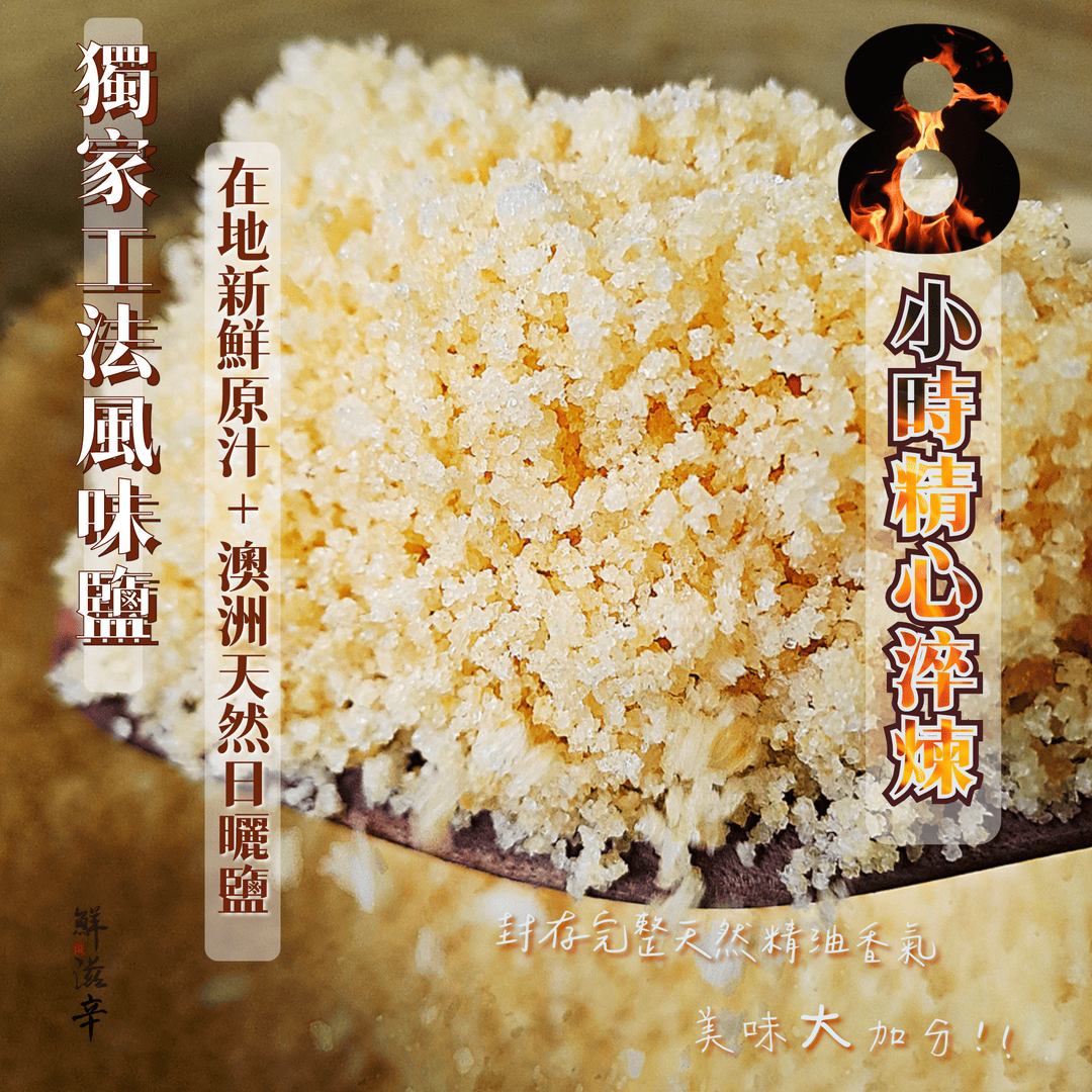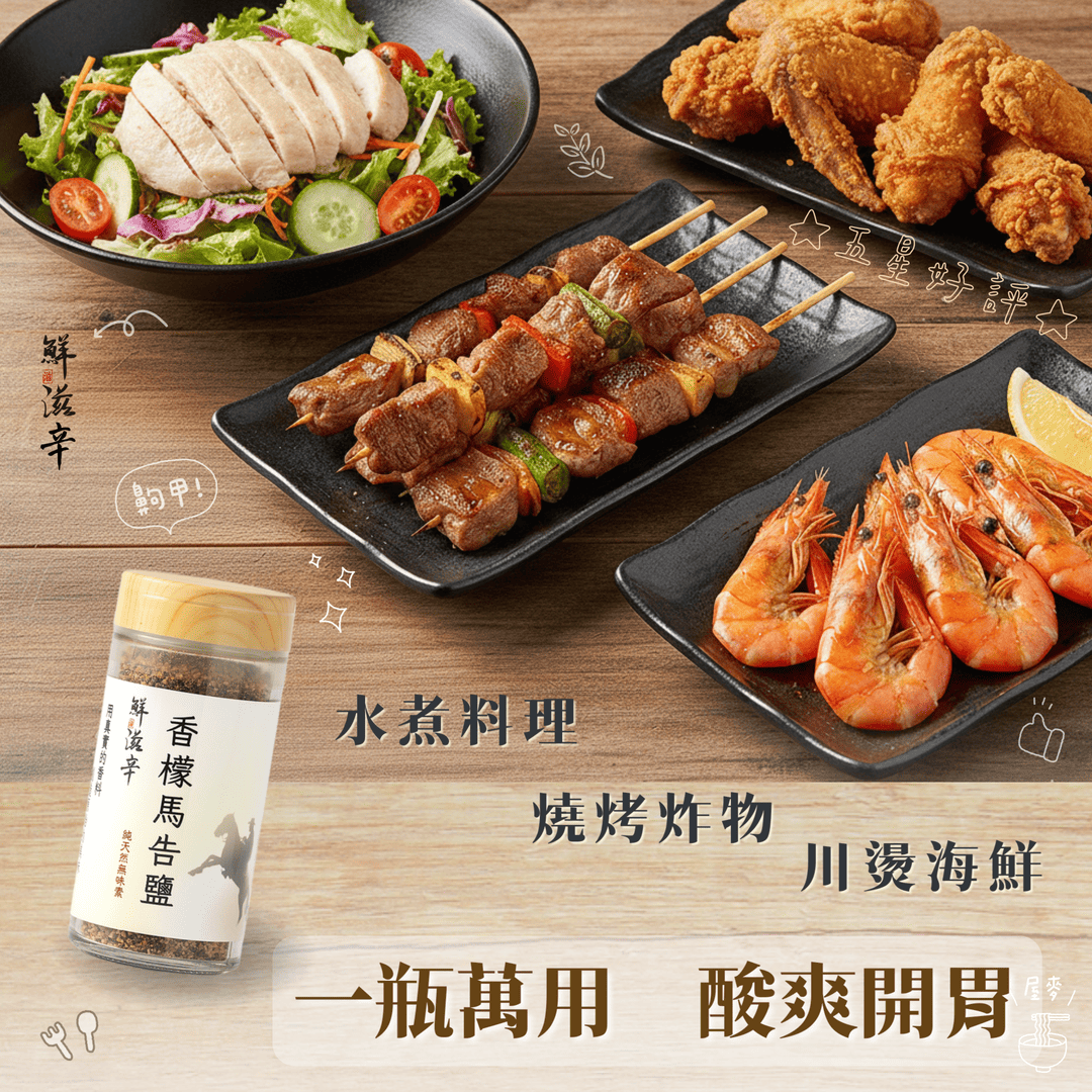 精選台灣特有"台灣香檬",含有獨特清爽酸香滋味。以獨家研發技術將原汁原味融入於天然海鹽中。 並加入台灣特有香料"馬告"山胡椒,微酸清爽的香氣碰上馬告獨特且濃郁的特殊風味, 最適合燒烤、炸物、輕食水煮料理添香解膩。酸香好滋味讓料理提升新境界!感受美食新饗宴!