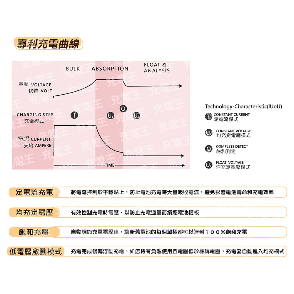 推高機/搬運設備專用全自動鉛酸電池充電器具有定電壓/定電流/均時衡化充電/浮動充電電池反接保護/電池異常停機保護