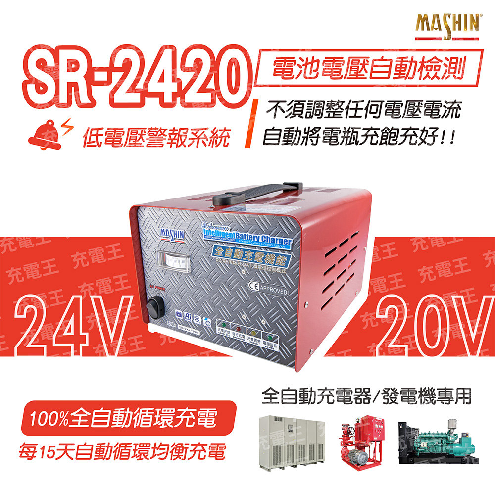 SR-2420 24V 20A 自備電源發電機用全自動充電器