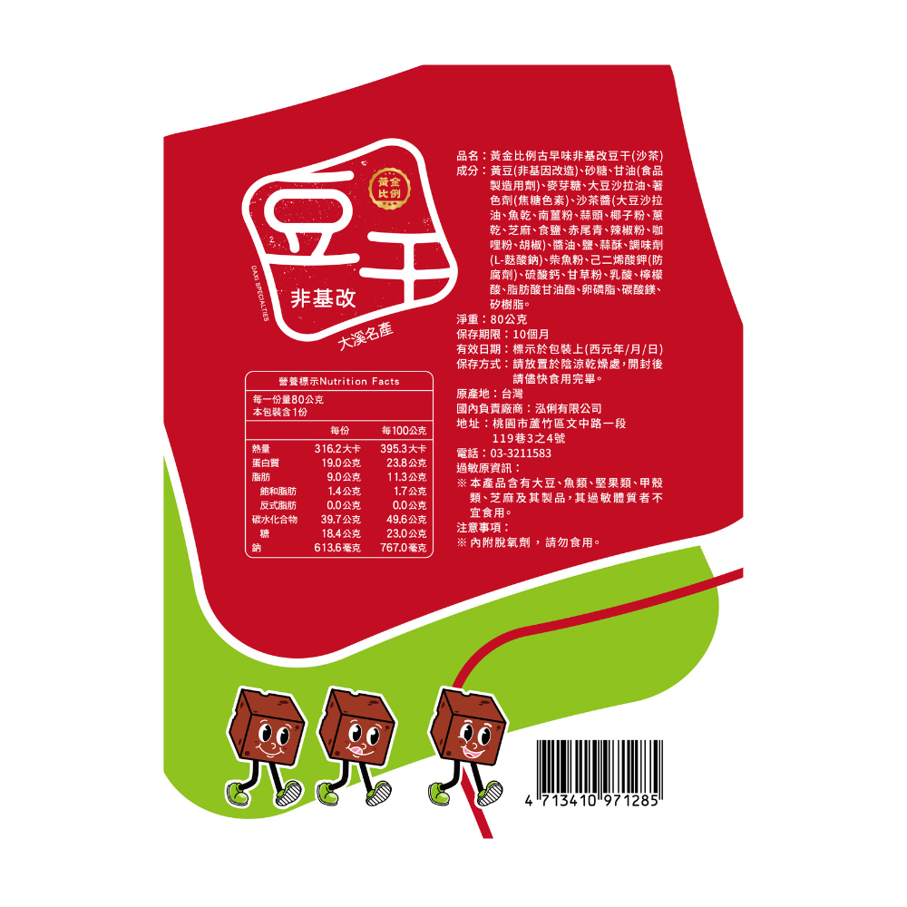 [泓俐]黃金比例古早味非基改豆干(沙茶)80g(3包組)