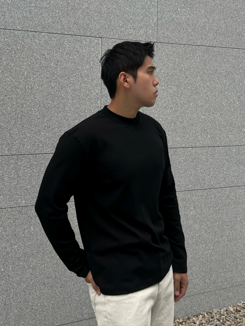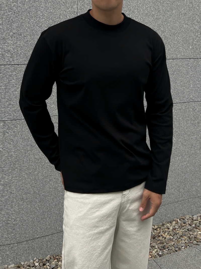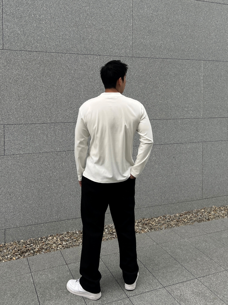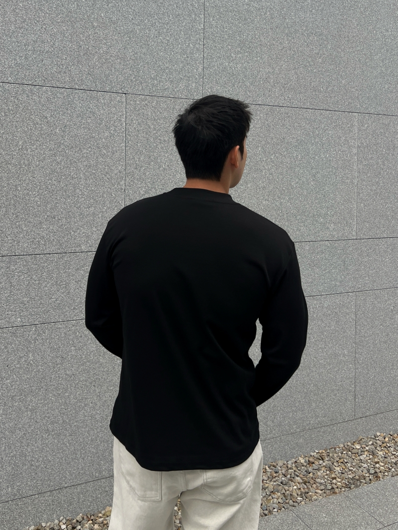 選用高密度彈性棉混紡布料,觸感柔軟卻不失挺度。微領結構讓領口更俐落,單穿或內搭皆自然貼合,不緊繃、不外翻。