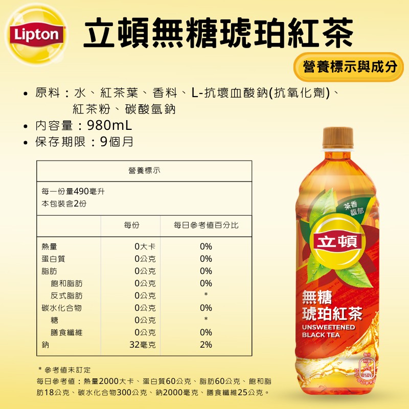 立頓琥珀紅茶(無糖) 980ml