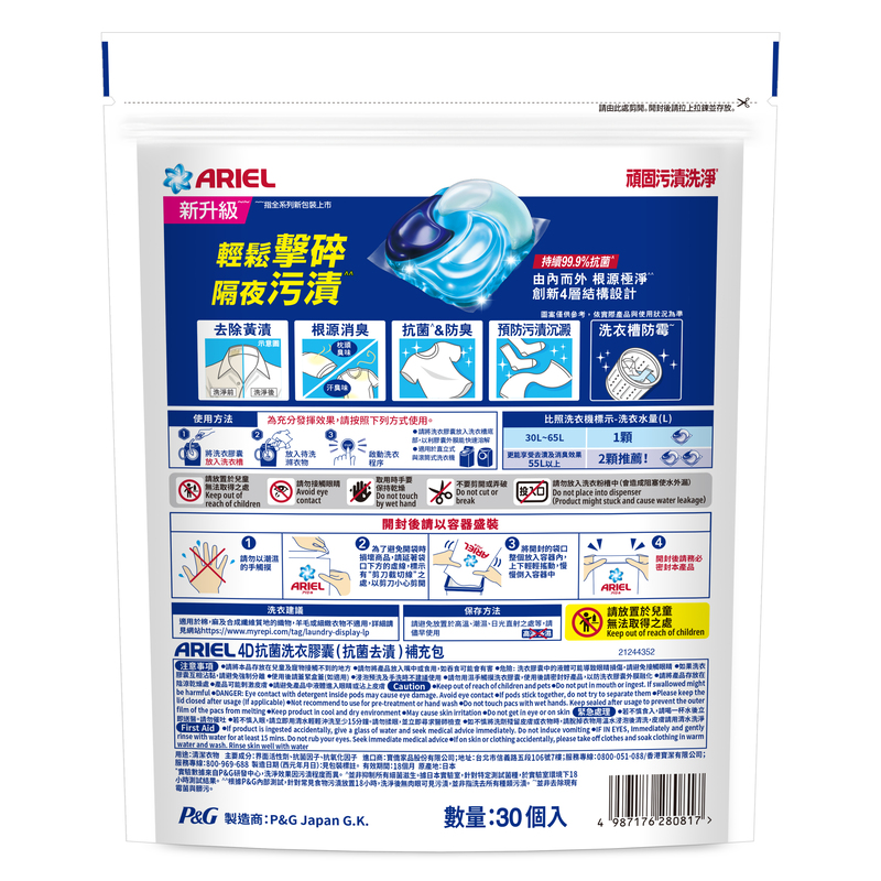ARIEL 洗衣膠囊30顆袋裝-抗菌去漬