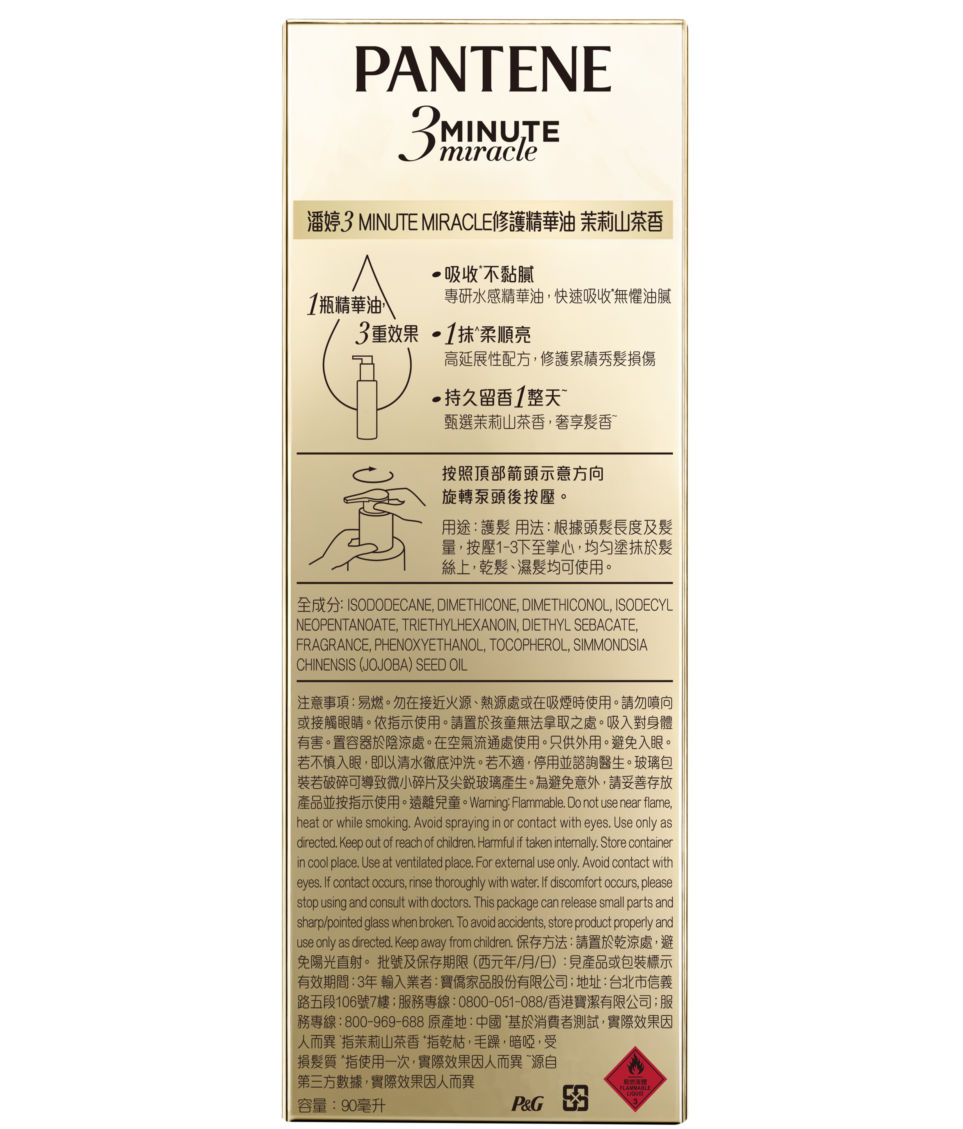 潘婷3分鐘奇蹟修護精華油-茉莉山茶香