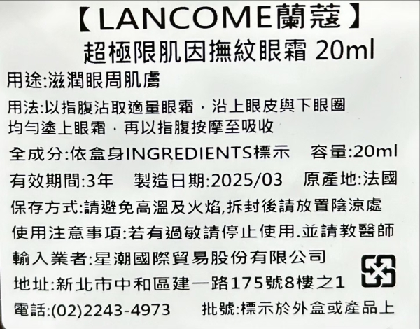 蘭蔻 超極限肌因撫紋眼霜 20ml
