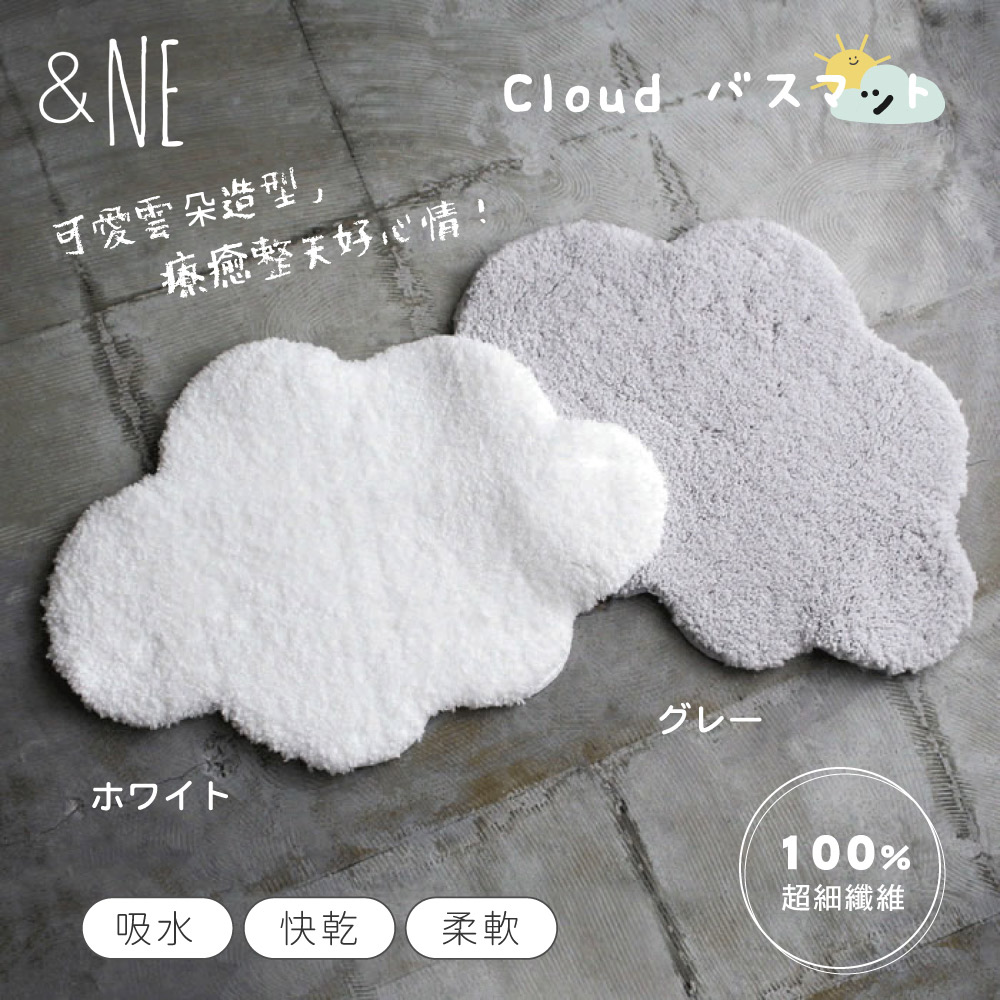 【&NE】日本製吸水速乾防滑雲朵地墊(雲端般的柔軟觸感) 雲朵白