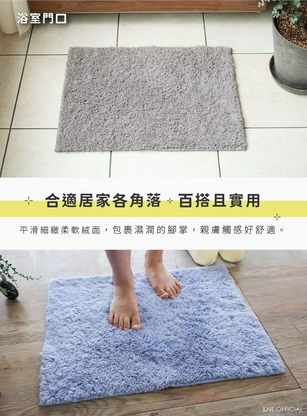 【&NE】日本製吸水速乾浴室地墊(Cosmotron纖維專利技術)-米