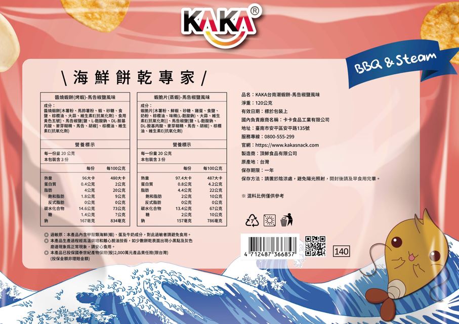 KAKA台南潮蝦餅-馬告椒鹽風味120g