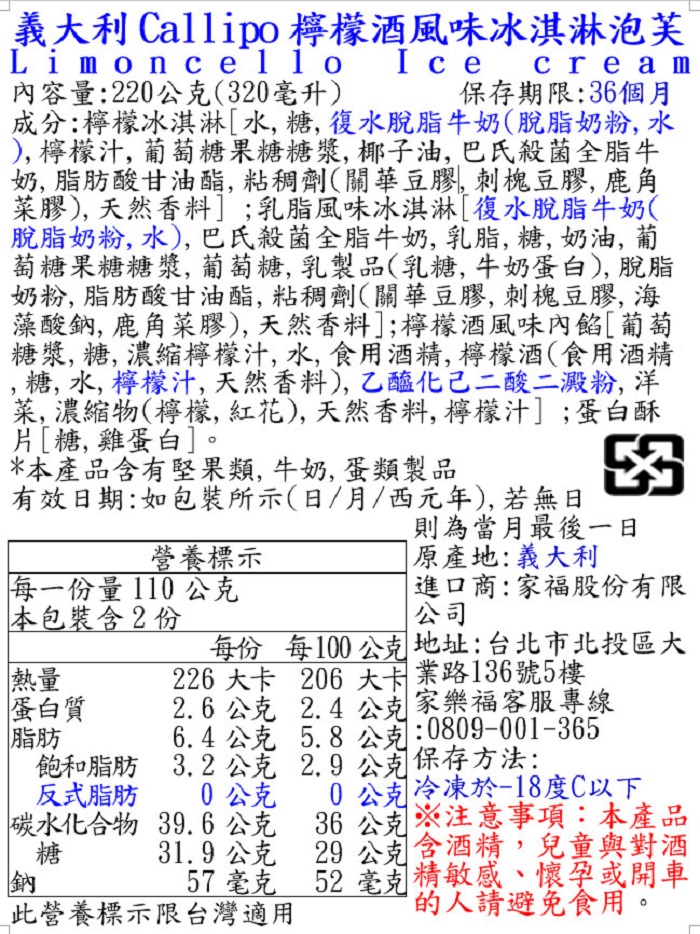 義大利Callipo檸檬酒風味冰淇淋泡芙