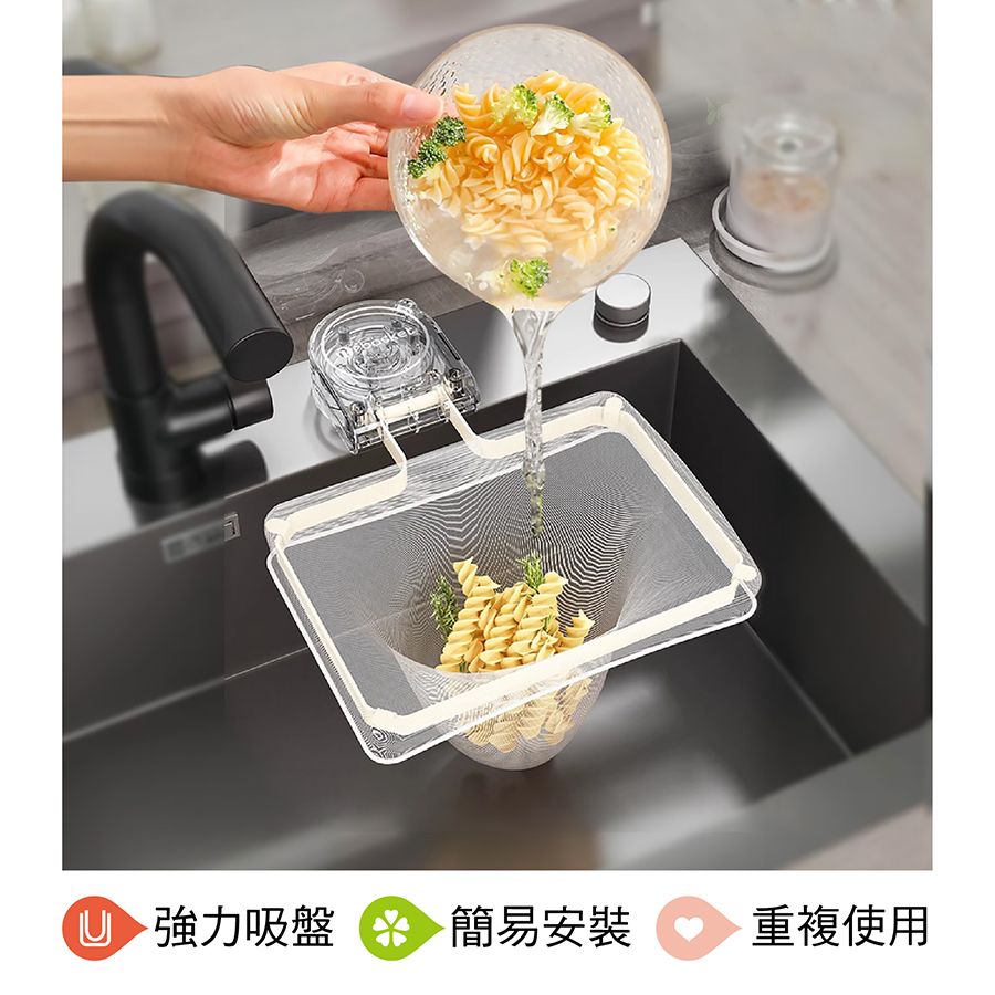 吸盤式水槽瀝水網架-附濾網(顏色隨機出貨)