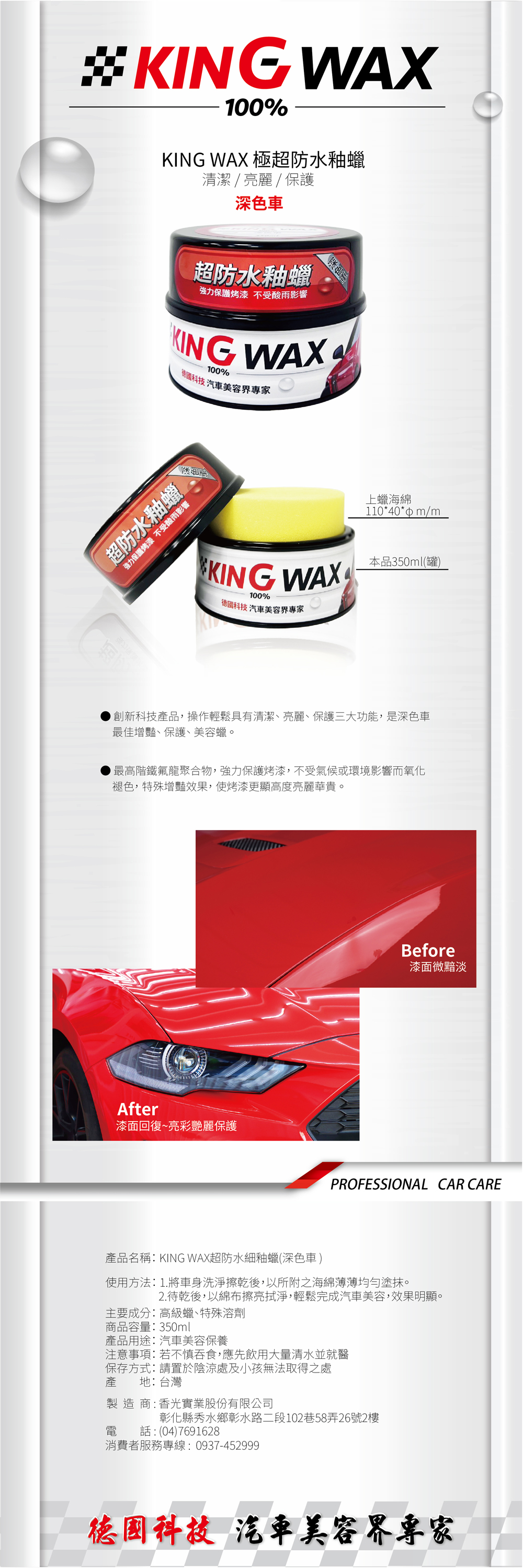【汽車百貨】KING WAX超防水釉蠟-深色車