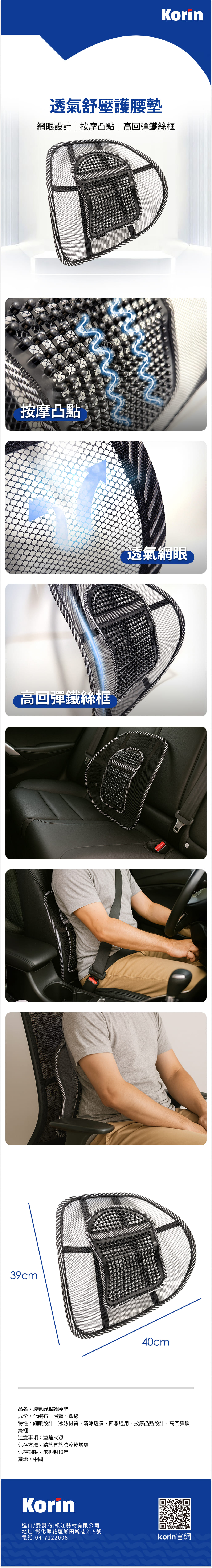 【汽車百貨】透氣紓壓護腰墊