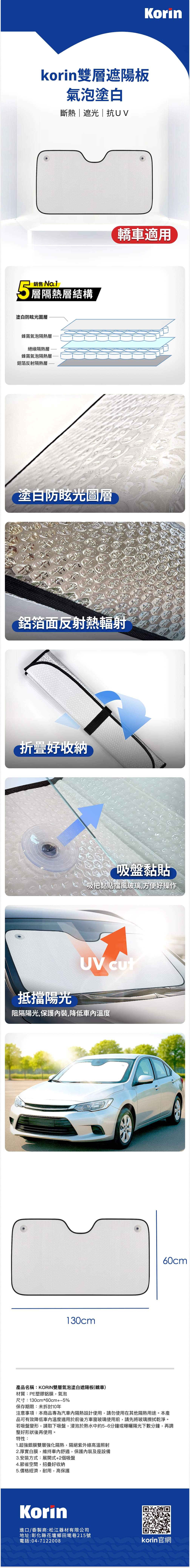 【汽車百貨】Korin雙層遮陽板(氣泡塗白)-轎車