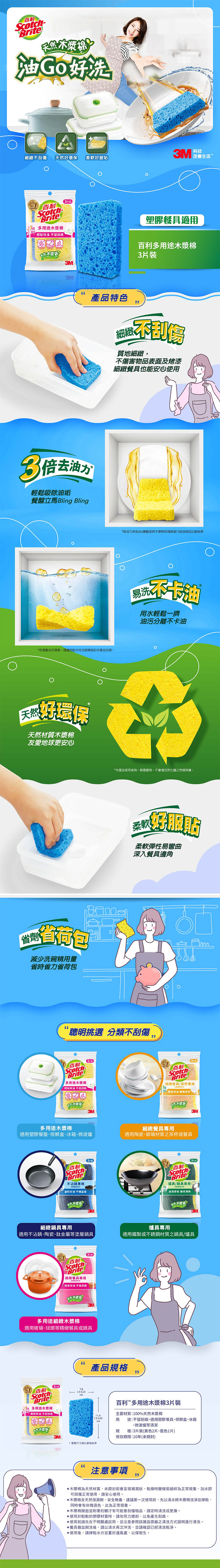 3M百利多用途木漿棉3片裝