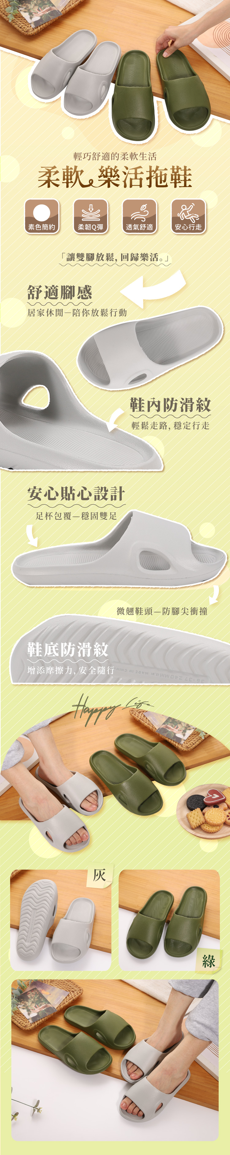 柔軟樂活休閒拖鞋-灰27