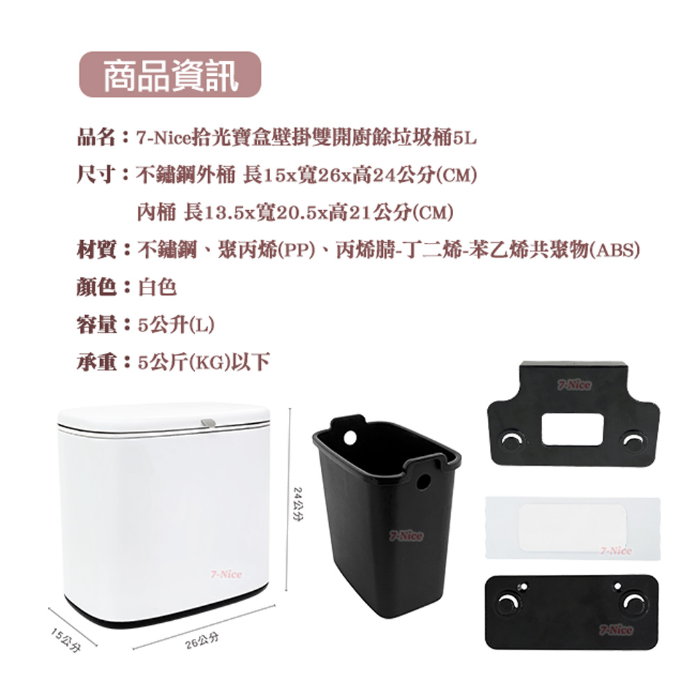 [7-Nice]拾光寶盒壁掛雙開廚餘垃圾桶5L贈除味活性碳X3