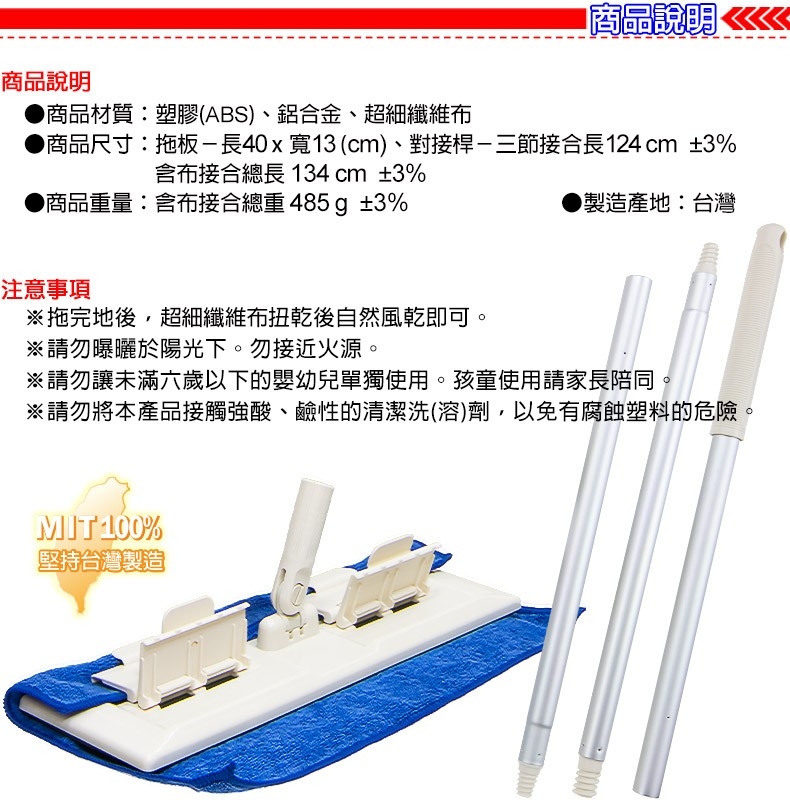 商品尺寸:拖板長40X寬13(cm)、對接桿一三節接合長124cm+3
