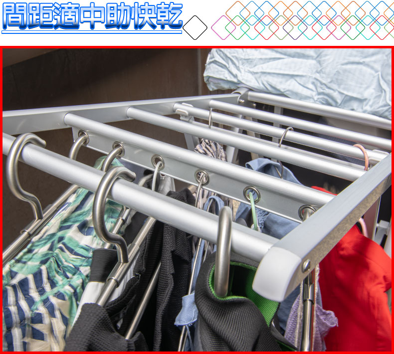採用鋁合金製作,結構堅固,能承受較重的衣物,長久耐用。