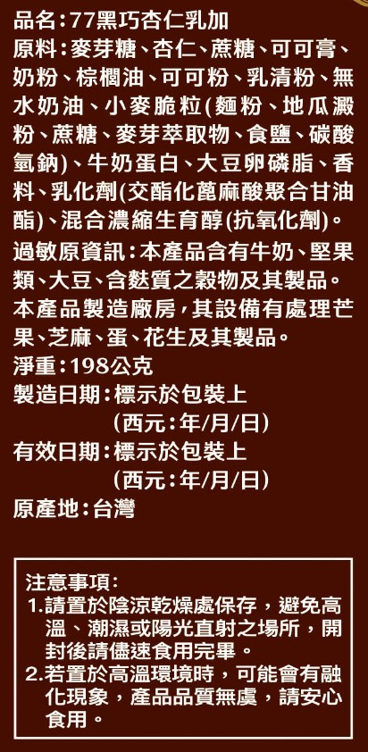 ◎品牌:77 ◎規格: 198g克 x 1 x 1Bag包