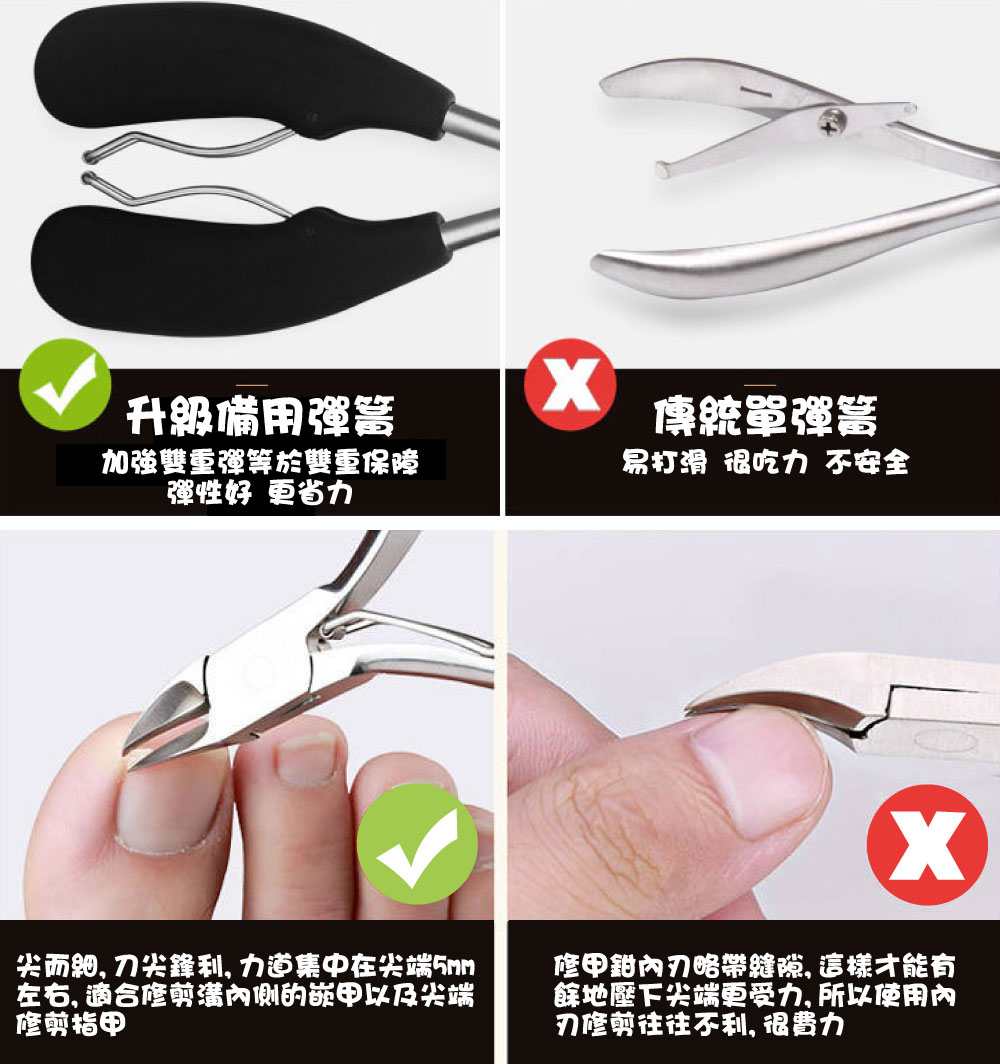 商品尺寸:12.5*8.2cm商品重量:約70g商品材質:不銹鋼+ABS+PP商品顏色:黑色/紅色專業修剪,輕鬆解決,讓你的指尖煥然一新!精雕細琢的工藝,匠心製作,每一寸細節都是完美藝術的呈現。我們追求極致,只為了為你帶來更完美的修剪體驗。再也不用為厚硬的趾甲而苦惱!我們的甲溝鷹嘴鉗輕鬆剪斷,如刀剪般順暢,瞬間擁有輕盈自如的步履。採用優質不銹鋼,專為你打造細緻、乾淨無殘甲的修剪效果。不僅如此,全新升級的雙彈簧設計,彈性更好,更省力!剪斷之後,回彈均勻,帶來格外輕鬆的感受。握感至上!我們特別設計了ABS手柄,舒適防滑,好握不滑手。讓你在修剪的過程中,輕鬆掌握每一次的力度,輕松擁有完美的修飾效果。清潔簡單方便!我們的甲溝鷹嘴鉗可清洗,只需輕輕一沖,污垢瞬間消失。清洗後,記得擦乾存放,讓它保持亮麗如新的外觀。最後,提醒您將甲溝鷹嘴鉗收納在兒童不易拿取的地方,以確保安全使用。*本產品非醫療產品,不可做為醫學儀器使用*