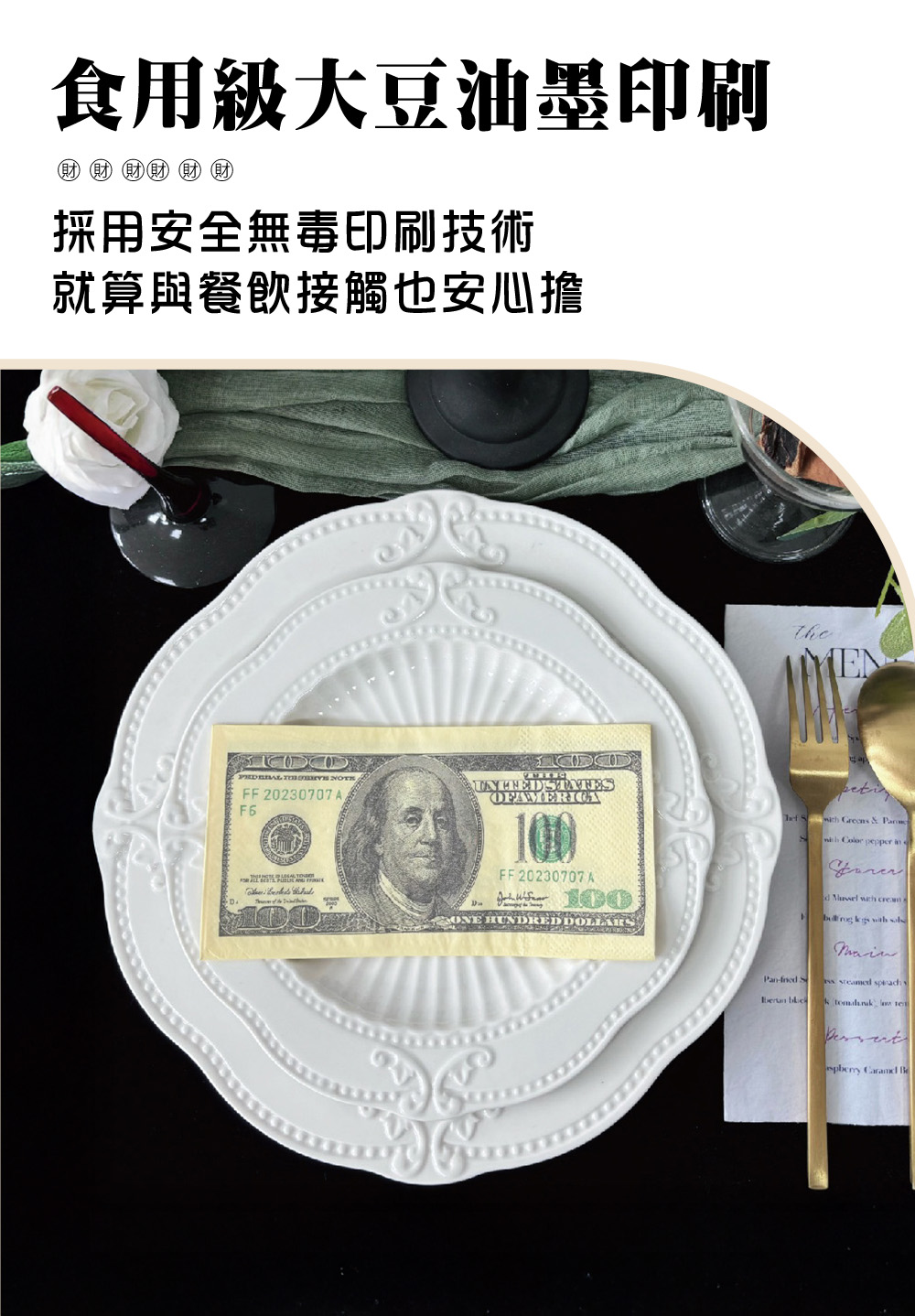 富豪專屬美金造型面紙(3層加厚/食用級大豆油墨)