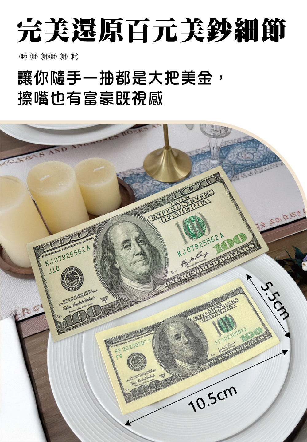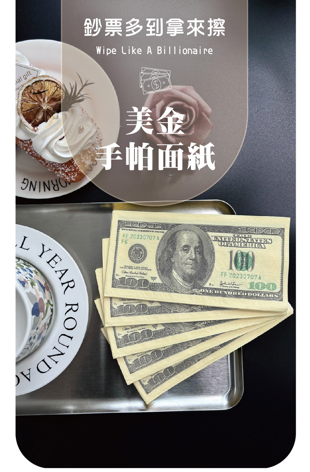 讓每一次擦拭都充滿「豪氣」!精選美金造型面紙