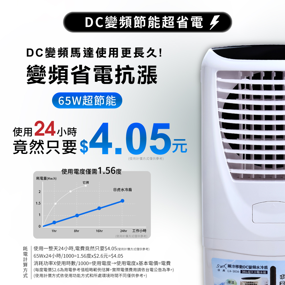 日虎 瞬冷移動 DC變頻水冷扇 LA-3036