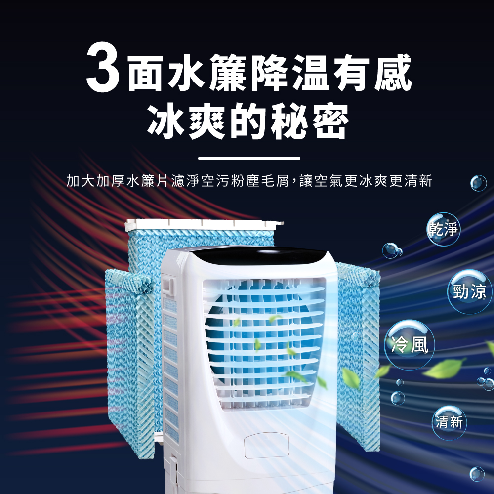 ☑馬達享五年保固,其它機身享一年保固☑DC變頻,省電更環保☑雙軸承純銅馬達☑25段風速☑上中下三處可加水☑採用加厚原漿紙簾,業界密度最高、吸水力佳、蒸發量大、過濾空氣效果更好☑低音頻☑可搖控☑35公升大容量☑送風距離達12m