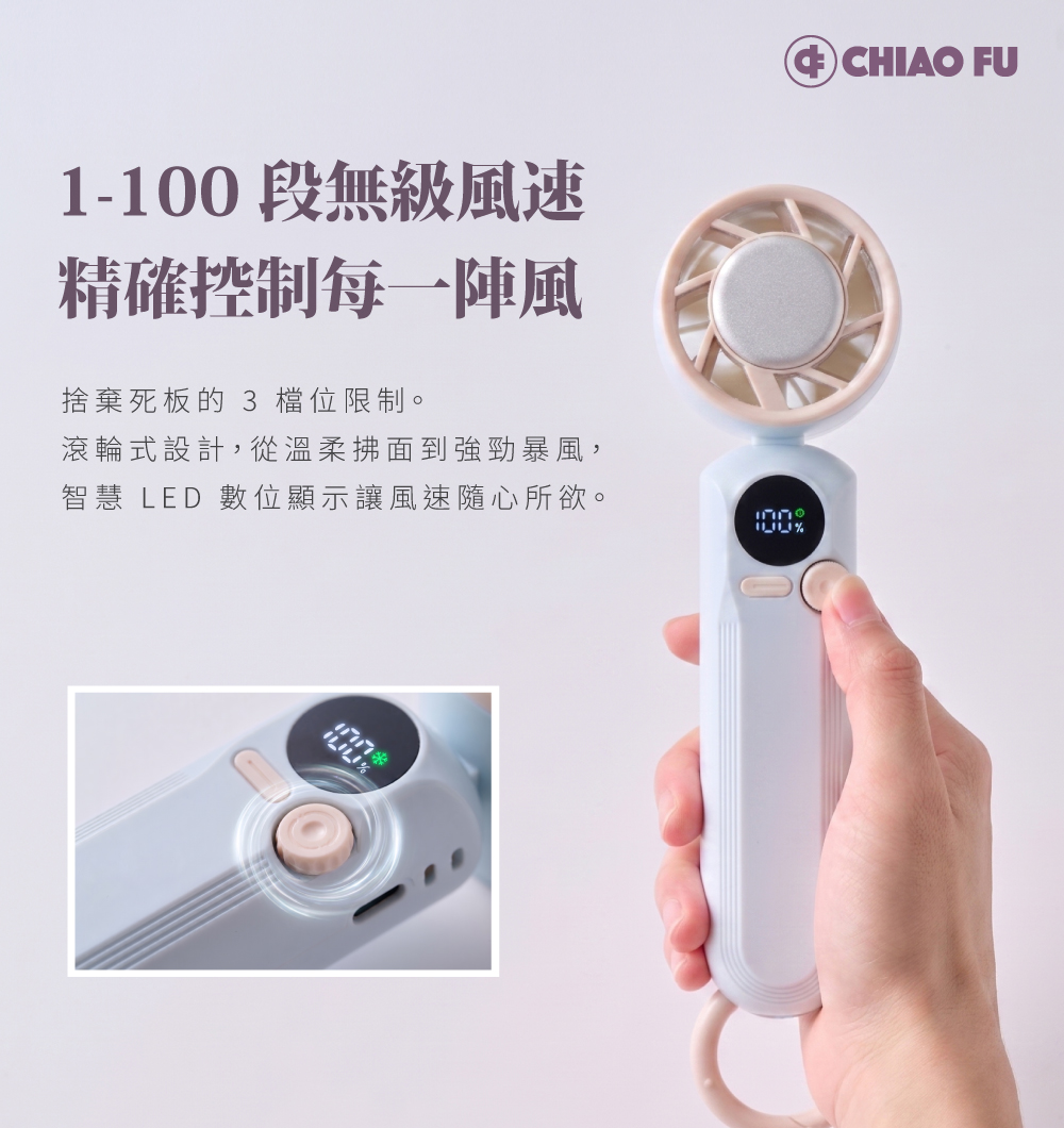 1-100 段無級調速捨棄傳統死板檔位,採用滾輪式微調與 LED 數位顯示螢幕。從柔和微風到強勁風,精準定義你的舒適涼感。