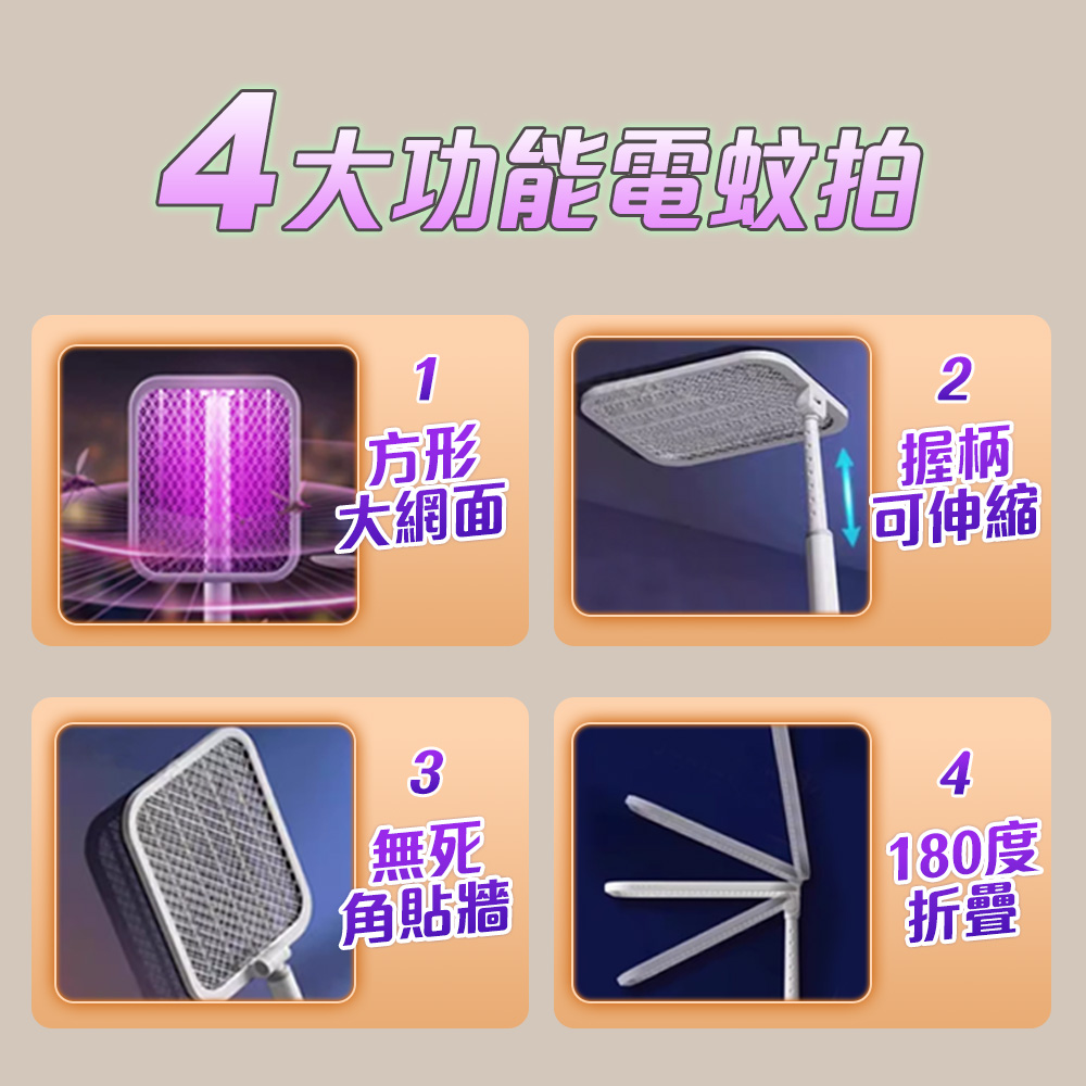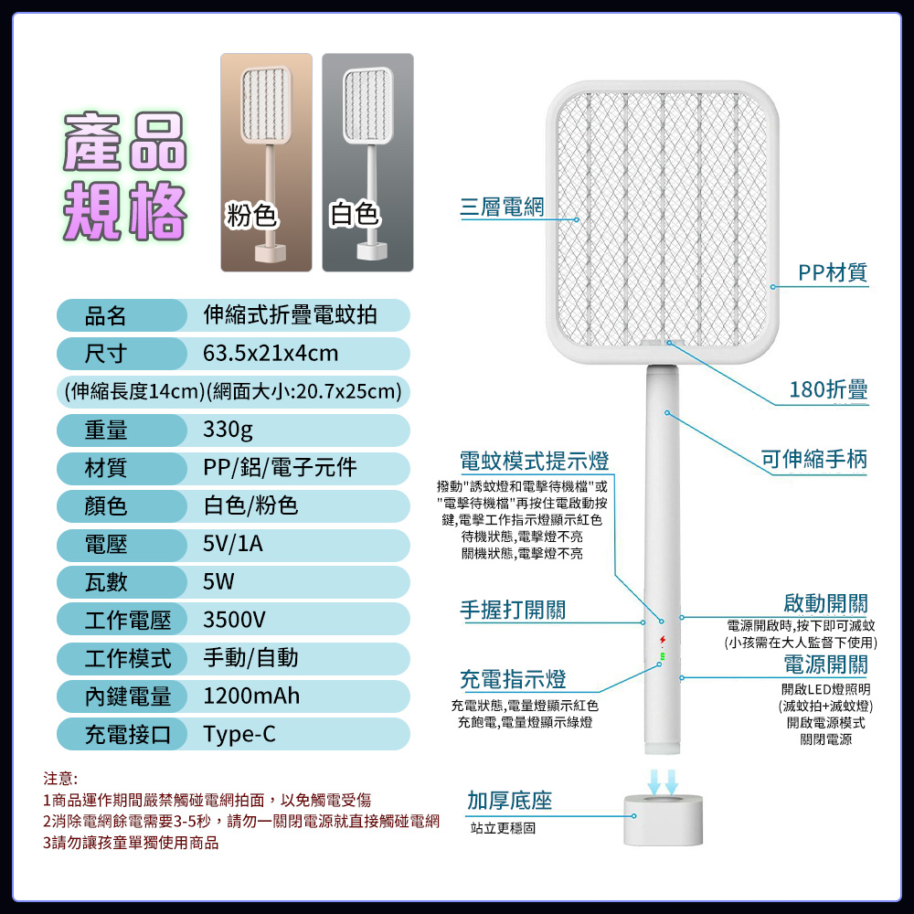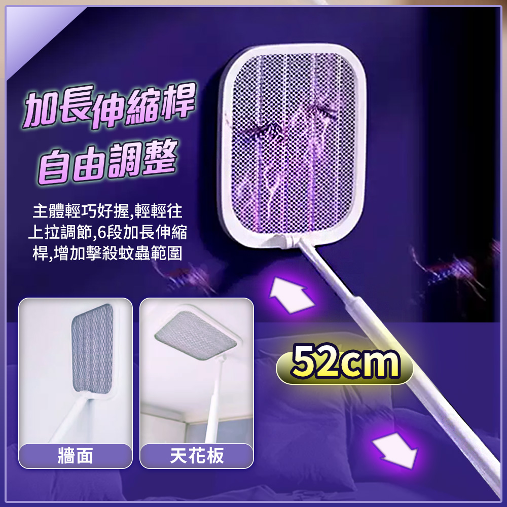 【HJY】鴻嘉源 伸縮式折疊電蚊拍F6-白色
