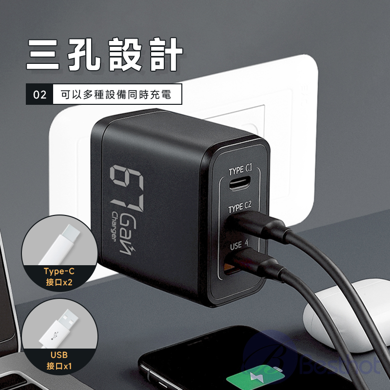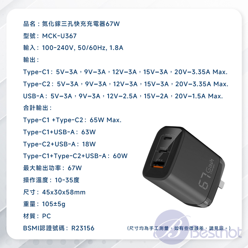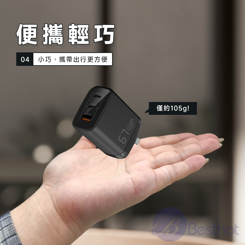 【Besthot】MCK-U367 氮化鎵三孔快充充電器67W