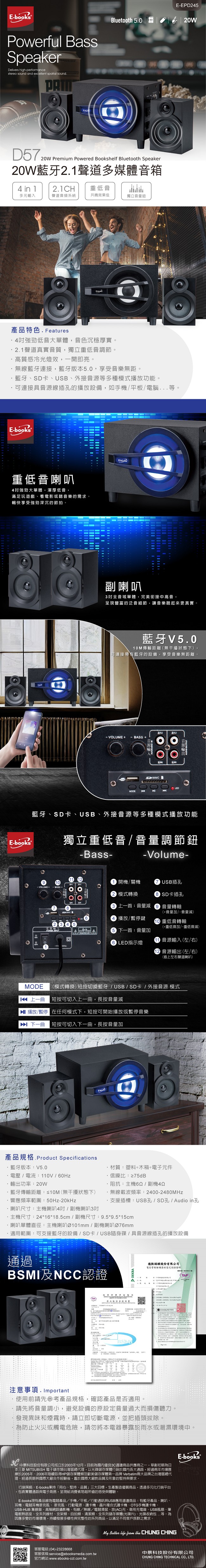 [ E-books ] D57 20W藍牙2.1聲道多媒體音箱