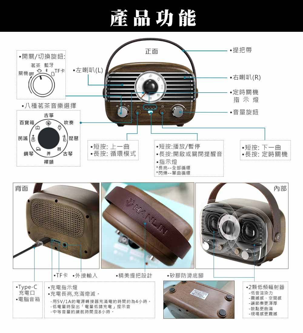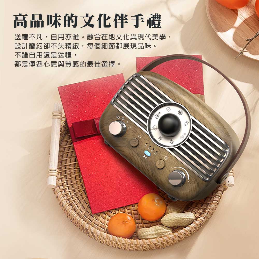 [HANLIN]-BTF2 復古風藍牙小音響 茗茶機 木紋 咖啡色 絕美 時尚 懷舊 手提 無線音響