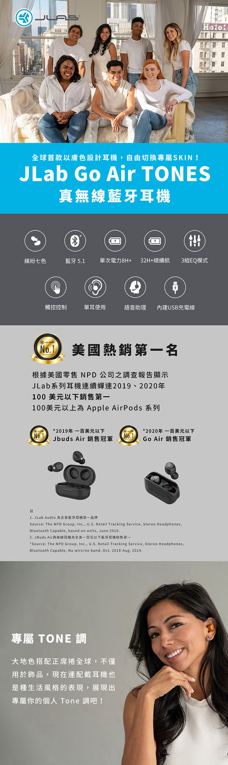 產品型號:JLab Go Air TONES 真無線藍牙耳機