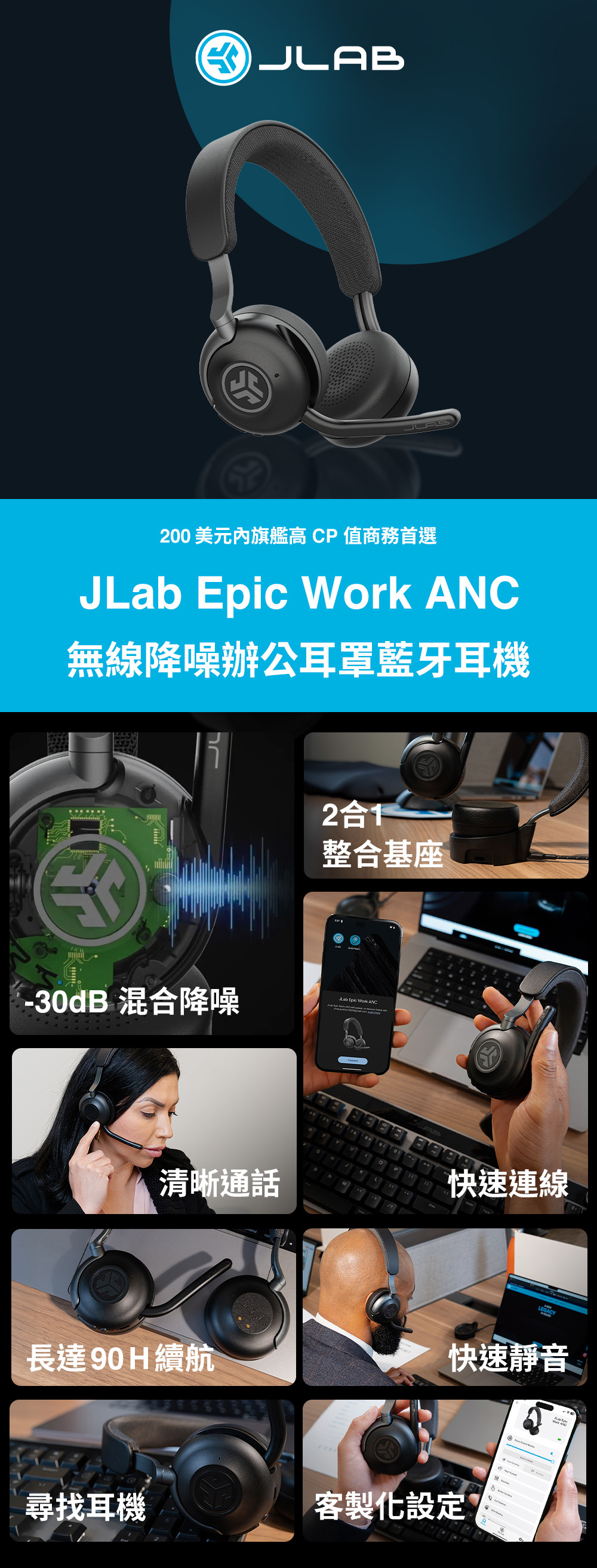 【JLab】Epic Work ANC 無線降噪辦公耳罩藍牙耳機
